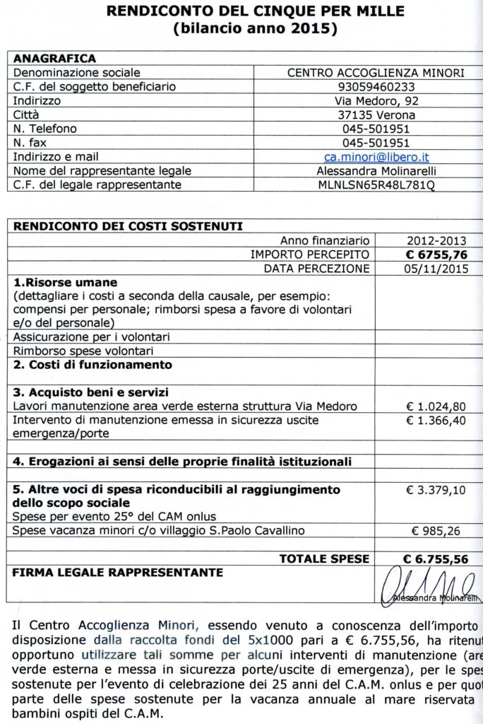 Si rende pubblica la rendicontazione del 5x1000 relativo all'anno 2015